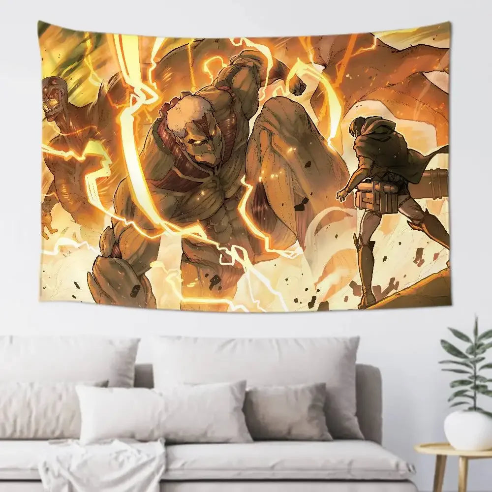 Add anime energy to any room — hang your Attack on Titan tapestry today and bring the walls to life!