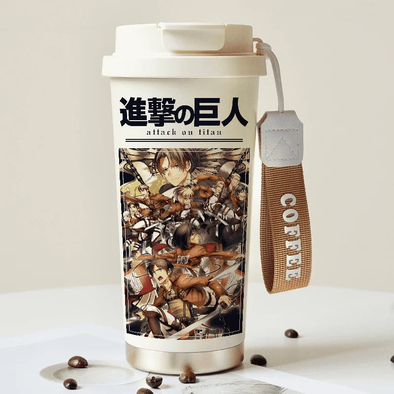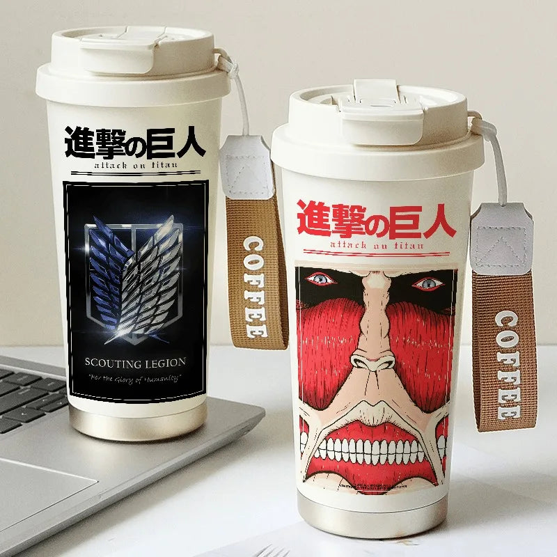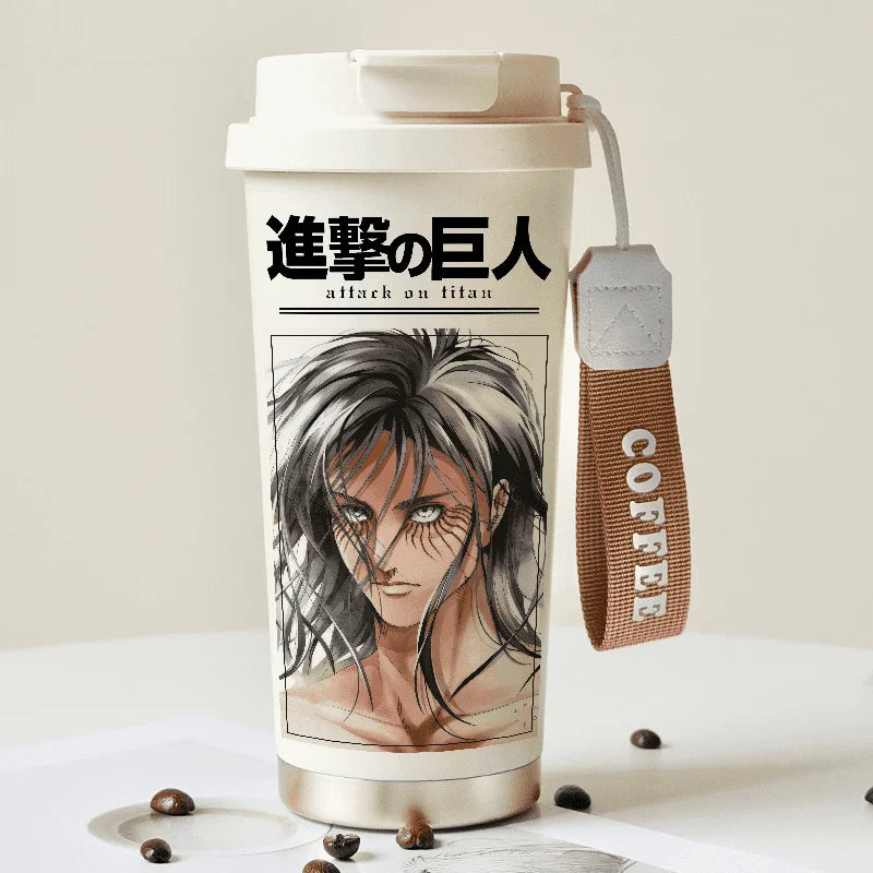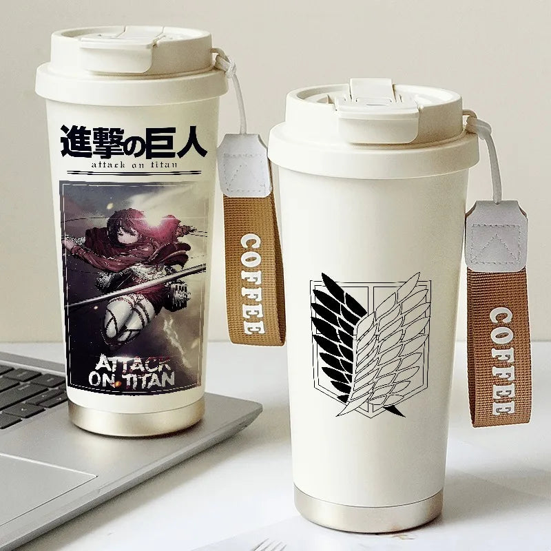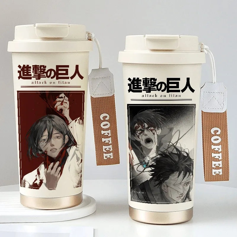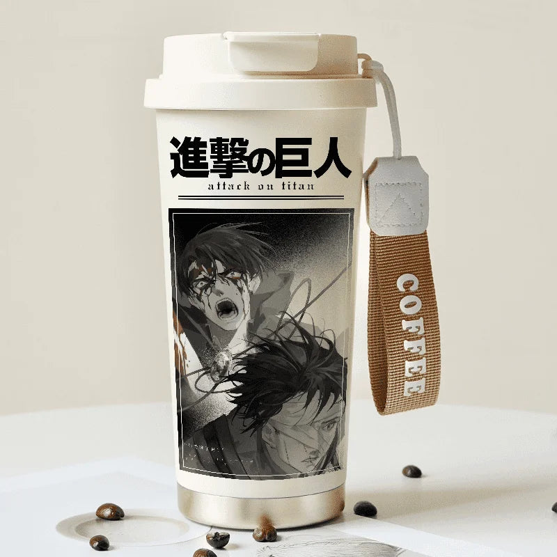Attack on Titan Thermos Cup – Eren Jaeger & Levi Ackerman Stainless Steel Flask with Strap