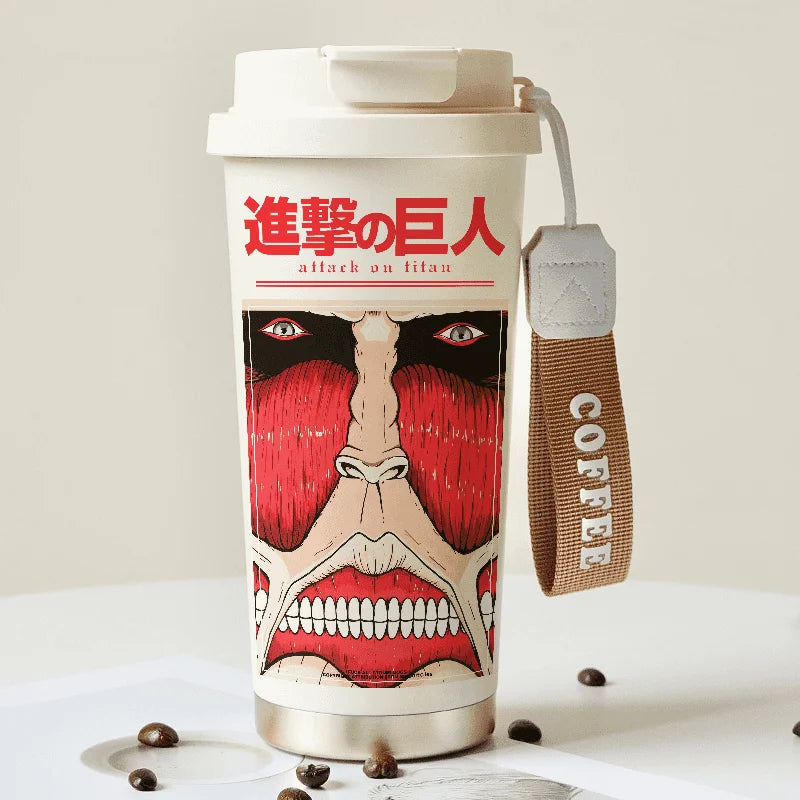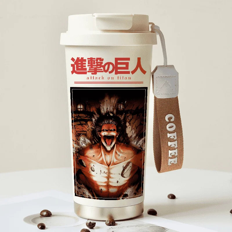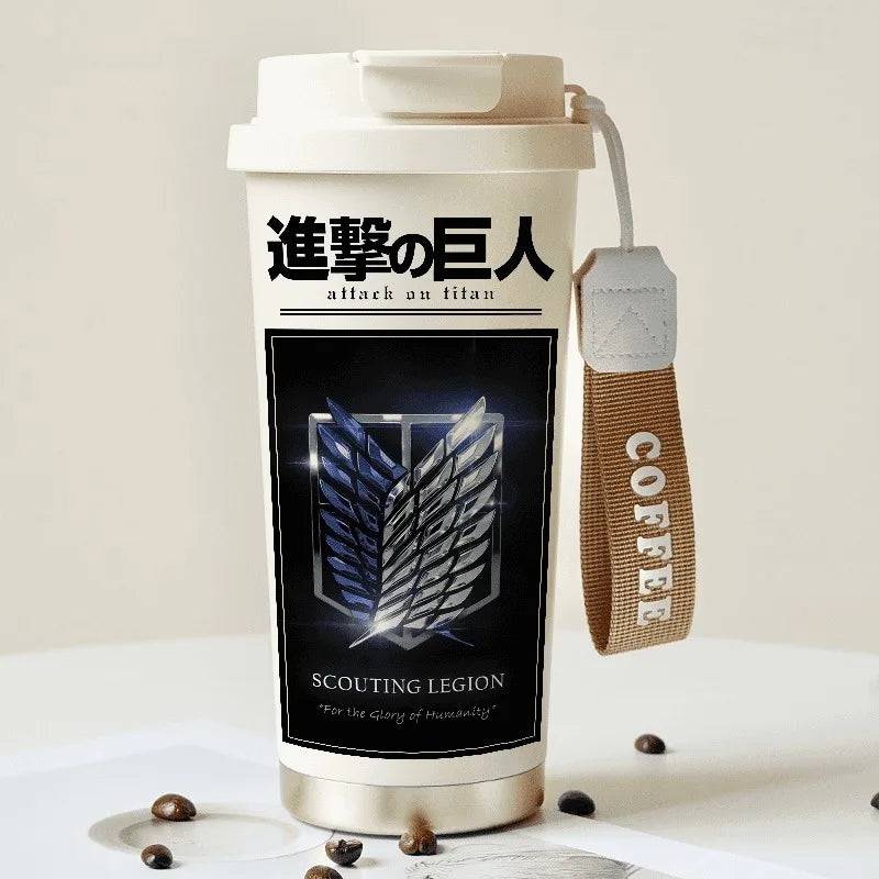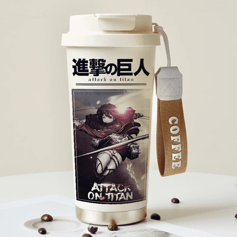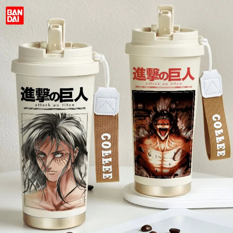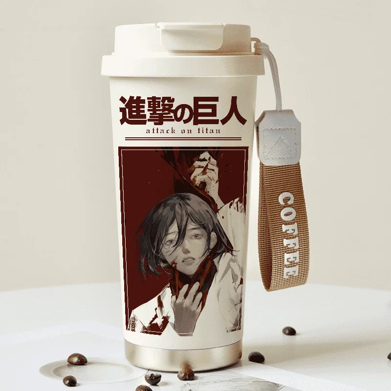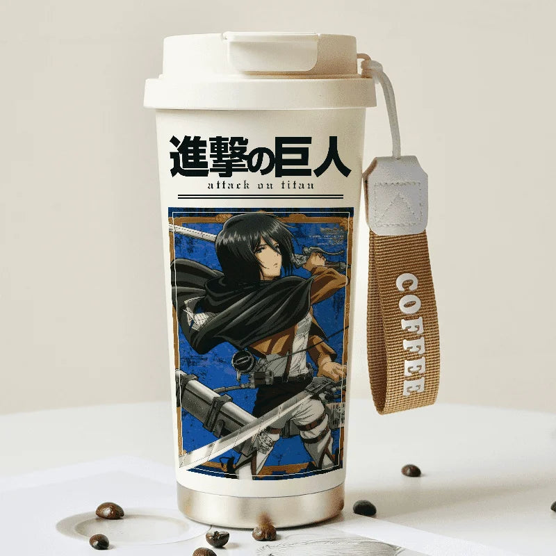Attack on Titan Thermos Cup – Eren Jaeger & Levi Ackerman Stainless Steel Flask with Strap