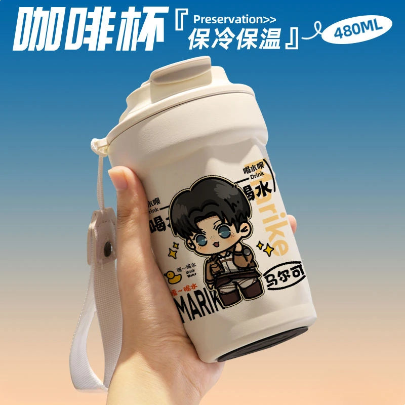 Attack on Titan Thermos Cup – Levi & Mikasa Stainless Steel Bottle