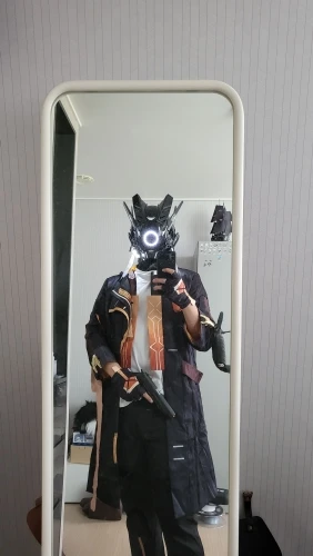 Complete costume includes jacket, pants, gloves, and accessories inspired by Caelus