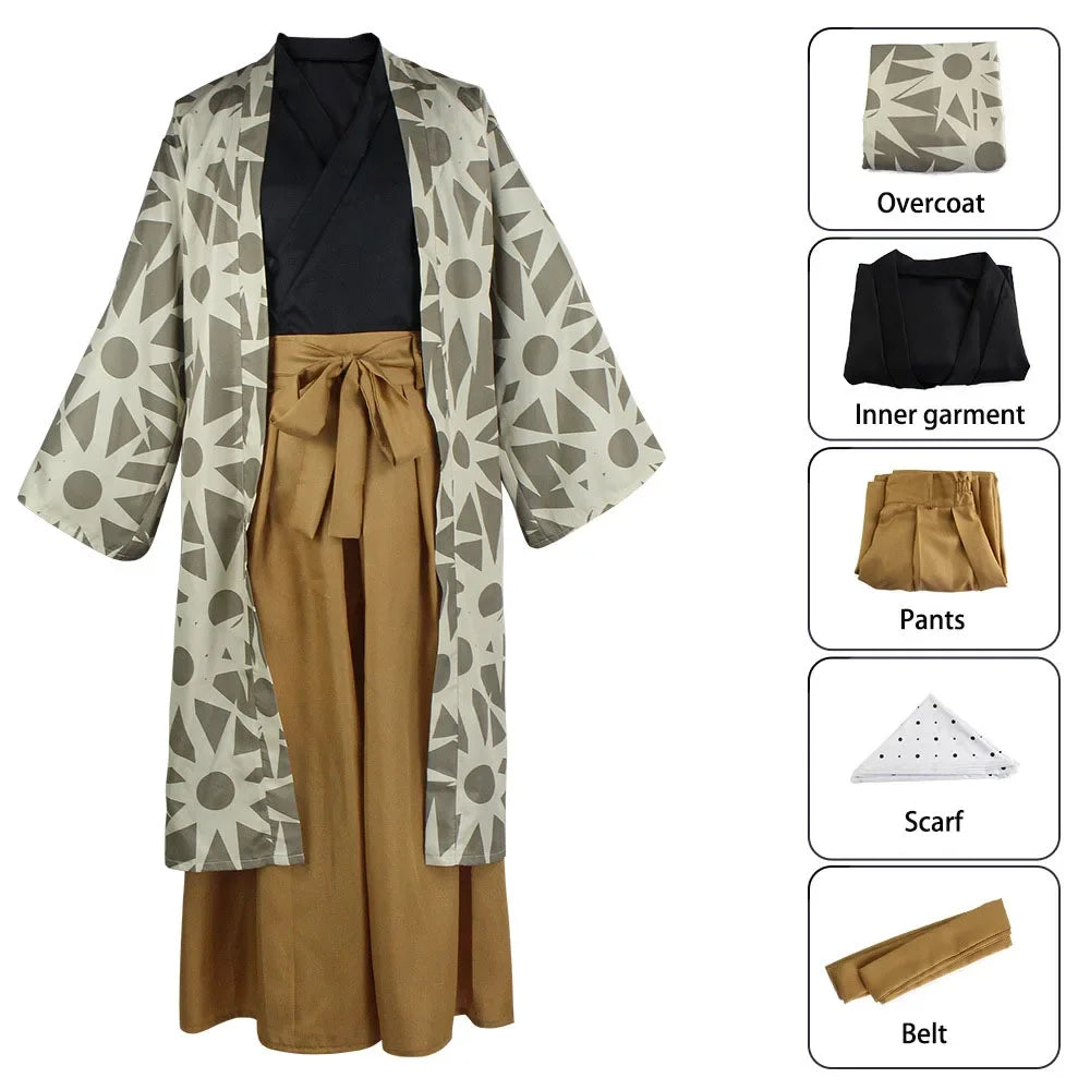 Includes Haganezuka’s signature jacket, pants, headband, and belt