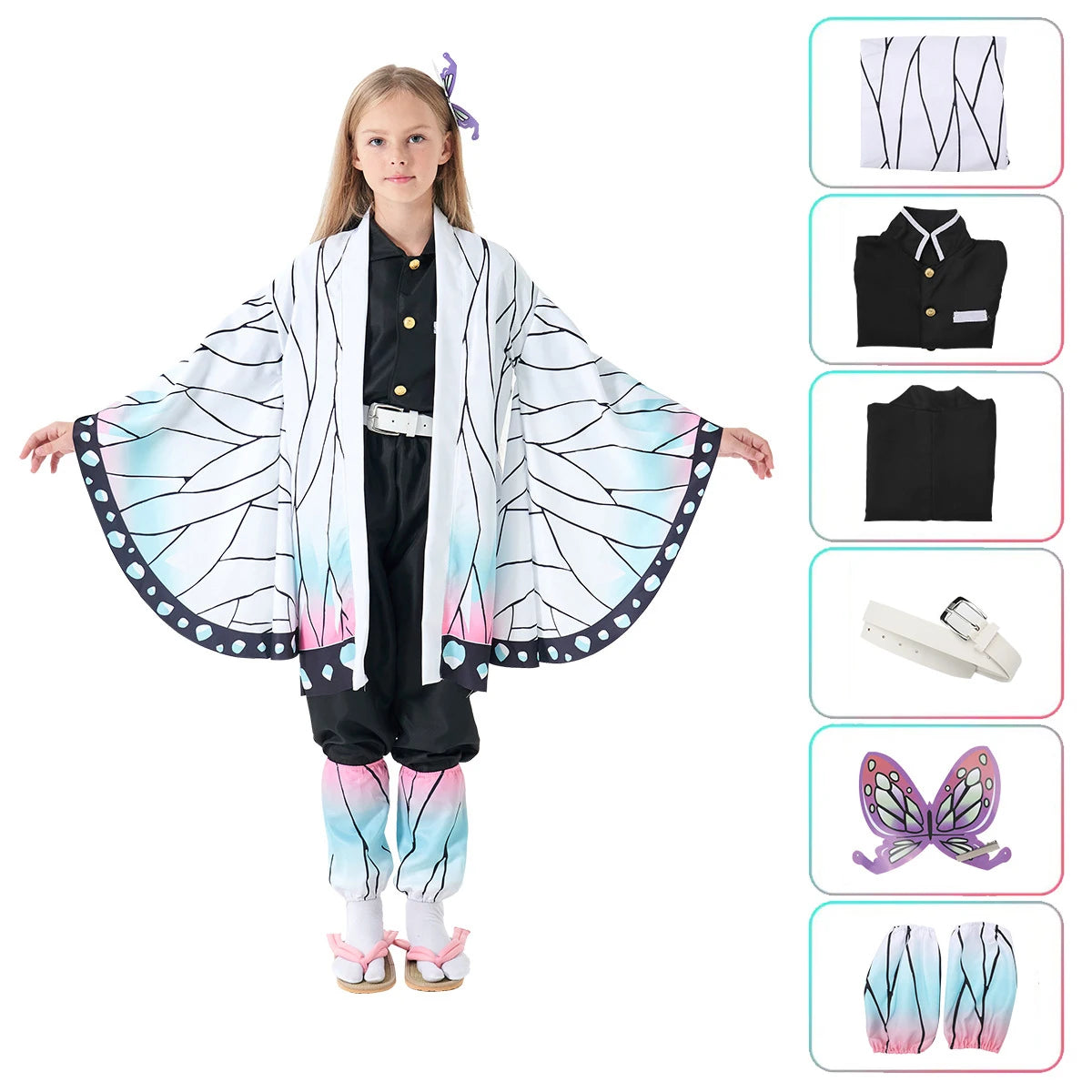 Includes Kochou Shinobu’s butterfly-themed uniform or Nezuko’s signature pink kimono