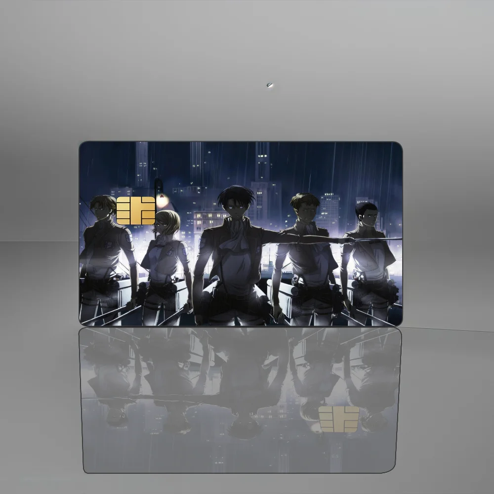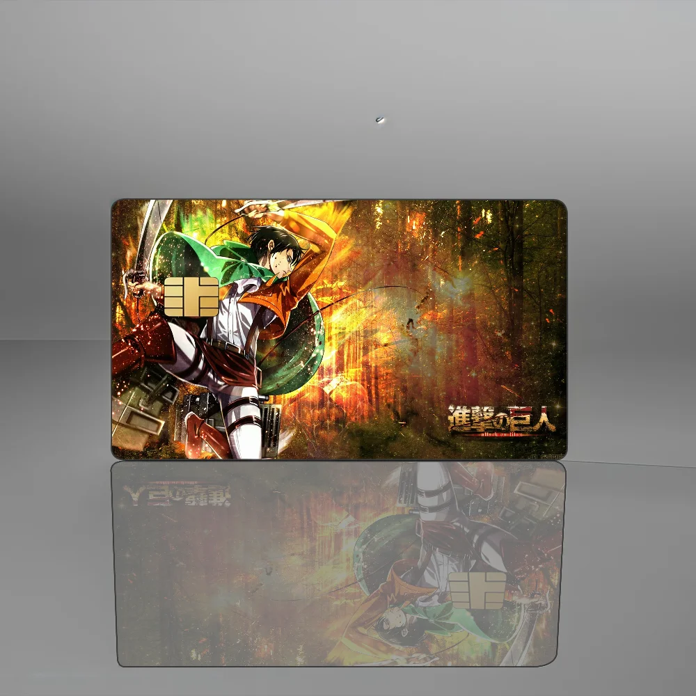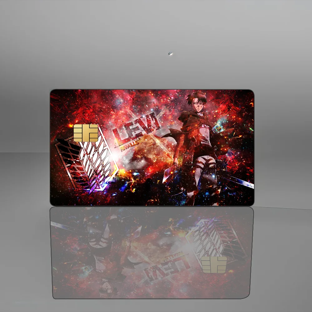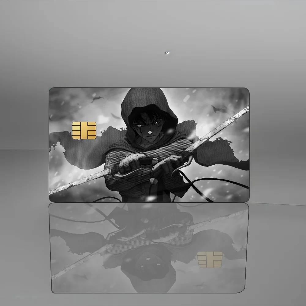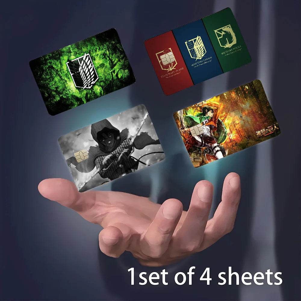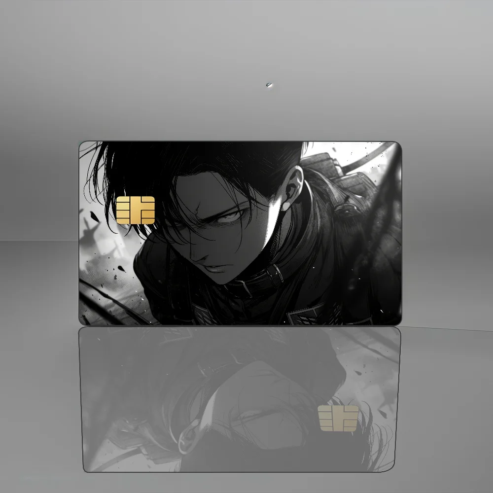 Customize your wallet essentials with this 4-piece Levi Ackerman card sticker set — sleek anime-style skins that bring your Attack on Titan fandom to every swipe!