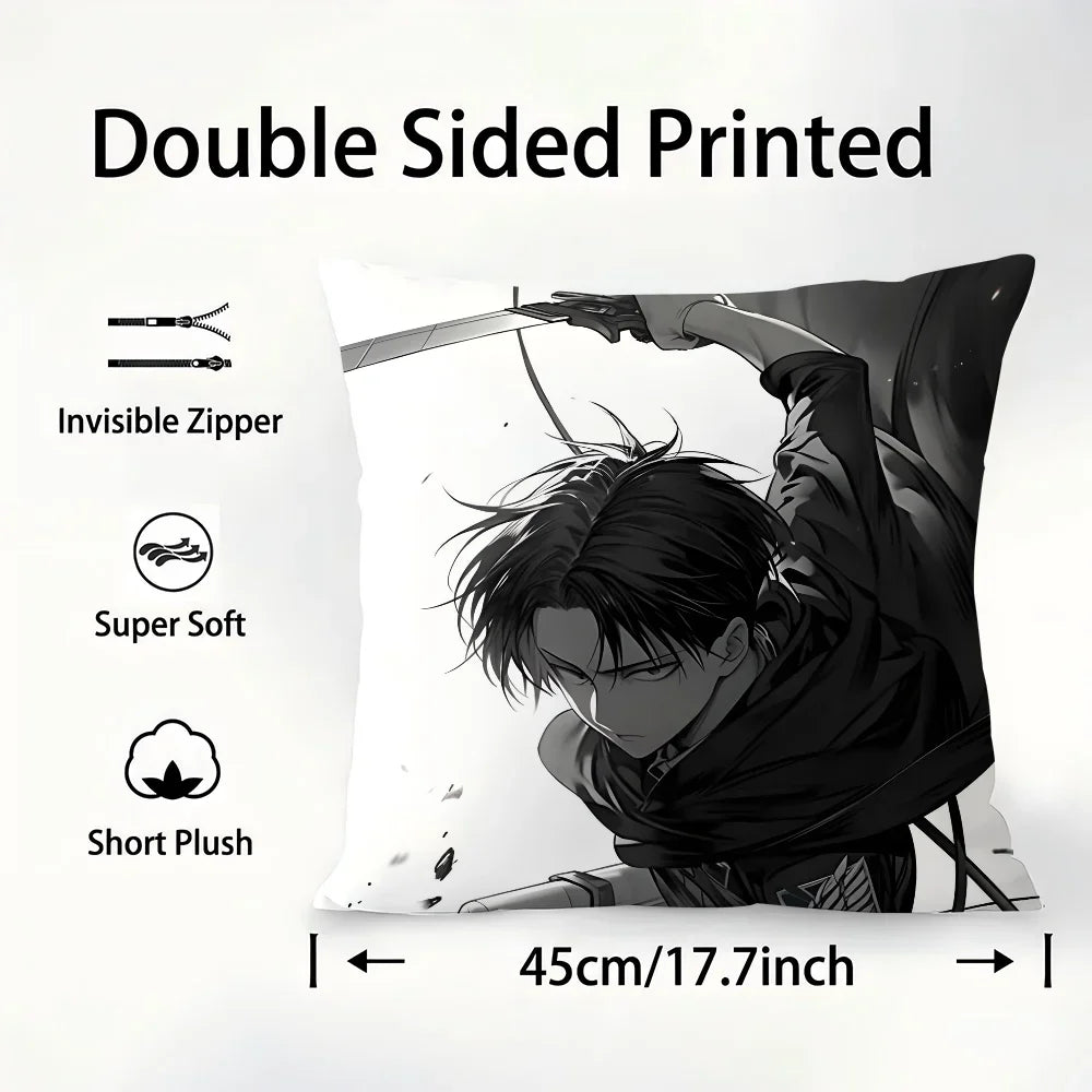 Levi Ackerman Pillow Cover – Plush Double-Sided Attack on Titan Cushion Case