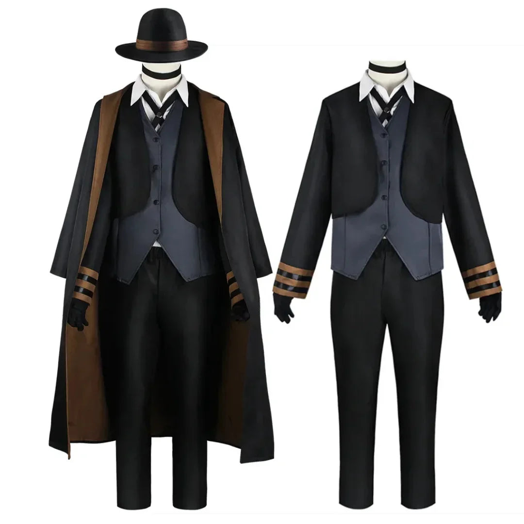 Includes Nakahara Chuuya’s signature hat, trench coat, and matching pants